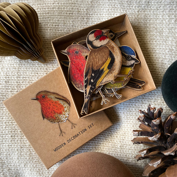 Garden Bird 5 Piece Wooden Decoration Gift Set