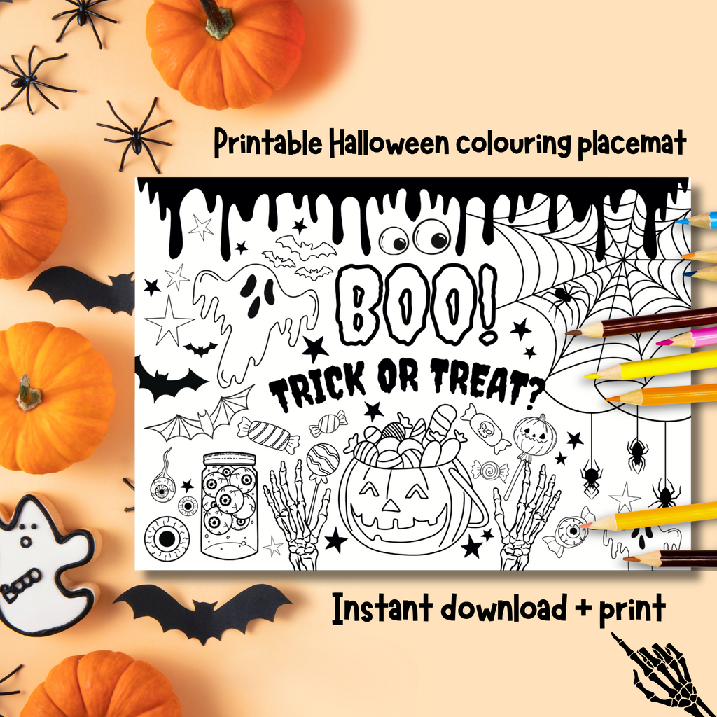 Make mealtimes (or 5 minutes peace!) a little more magical this spooky season with our Halloween colouring placemat for kids. Brimming with Halloween fun – think spiders, sweeties, bats, bones and more. Giving little ones a chance to get creative with their colouring while soaking up the spooky spirit.