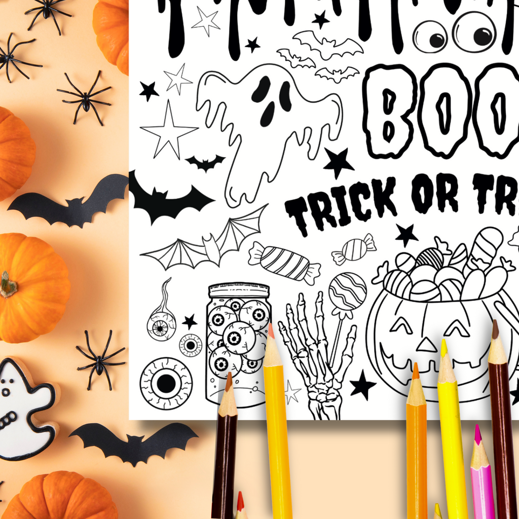 Packed with playful designs and ghoulish doodles, it’s perfect for keeping little hands busy during parties, after school dinners, trick-or-treat gatherings or rainy weekends.