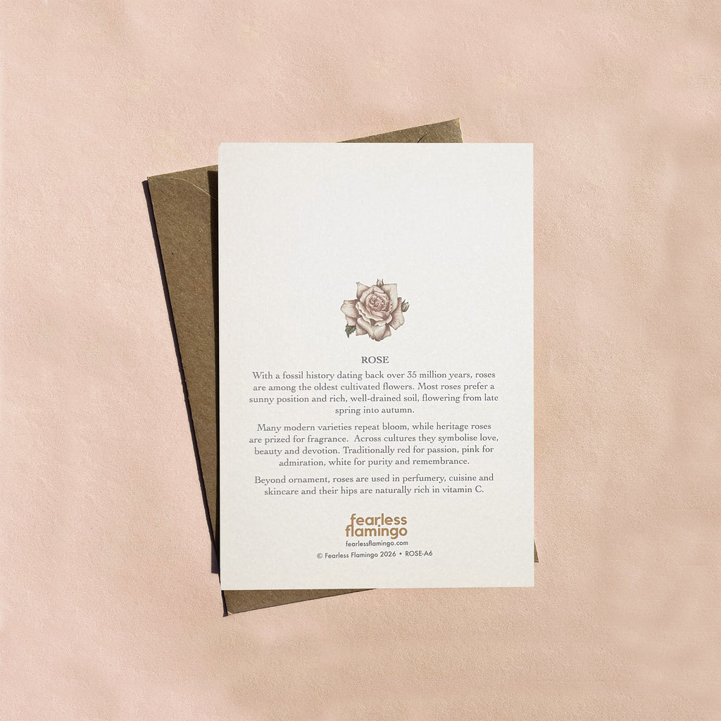 The rose artwork was originally drawn and coloured by hand to capture the timeless elegance of this iconic bloom. The card is blank inside, making it perfect for birthdays, anniversaries, love notes, thank you messages or any heartfelt occasion.